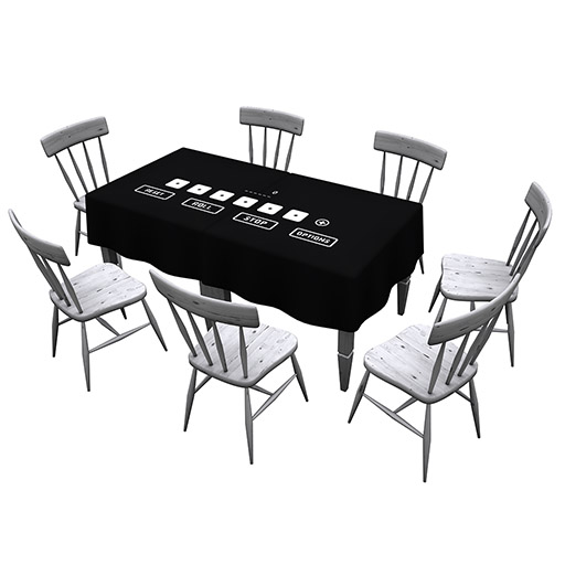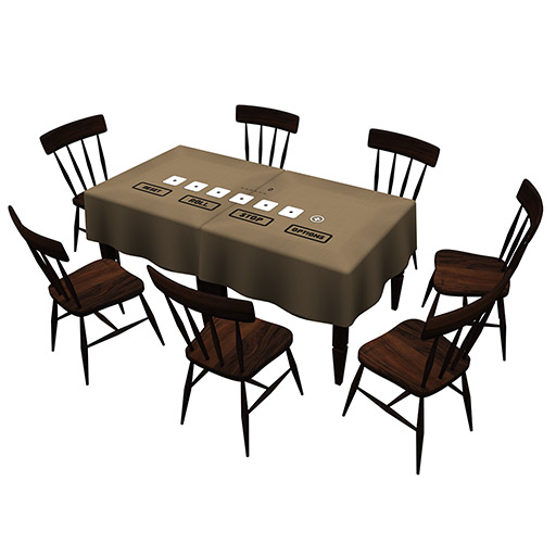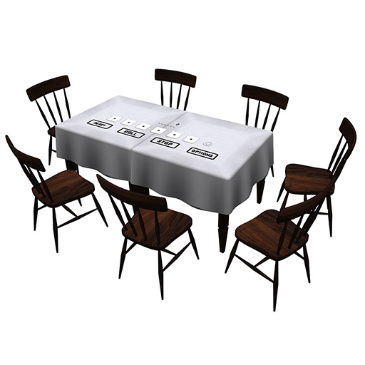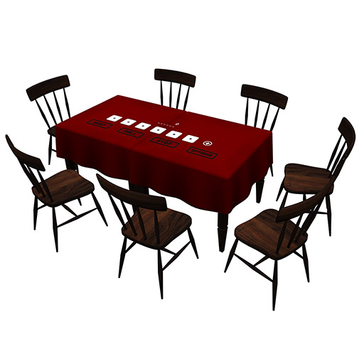 100% Mesh GreedyGreedy table with 7 seats and a land impact of 11 LI using only 2 scripts. Recognises avatar gender and automatically chooses suitable animations.